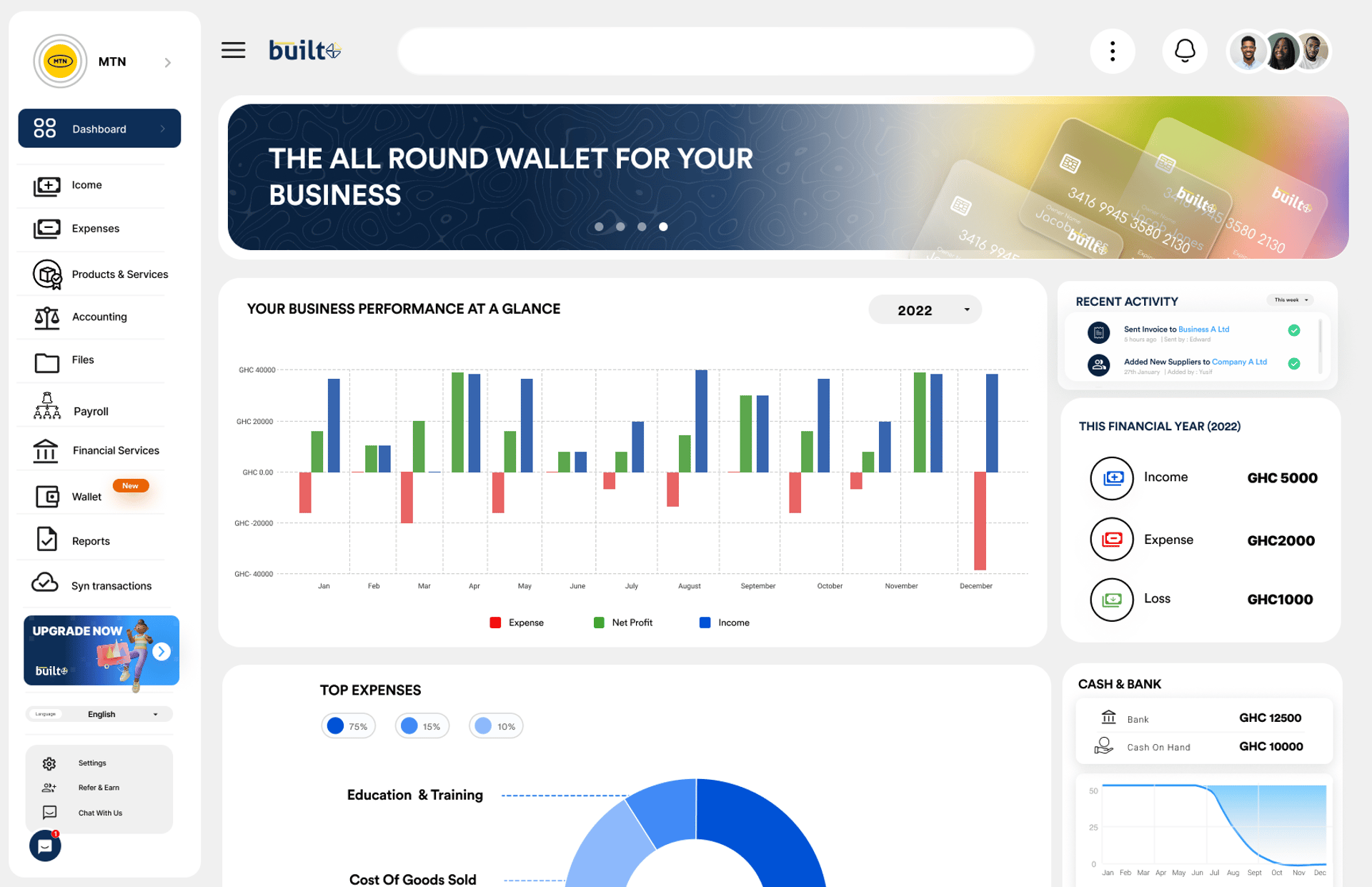 A modern, intuitive dashboard would make managing finances smoother.