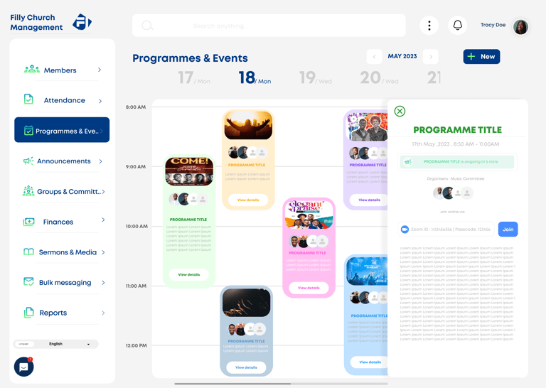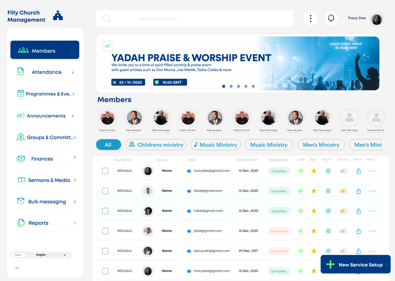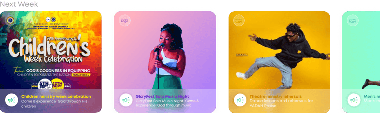 Event & Service Scheduling – Makes it easy to plan, organize, and manage church events and volunteer assignments with clear timelines and reminders.