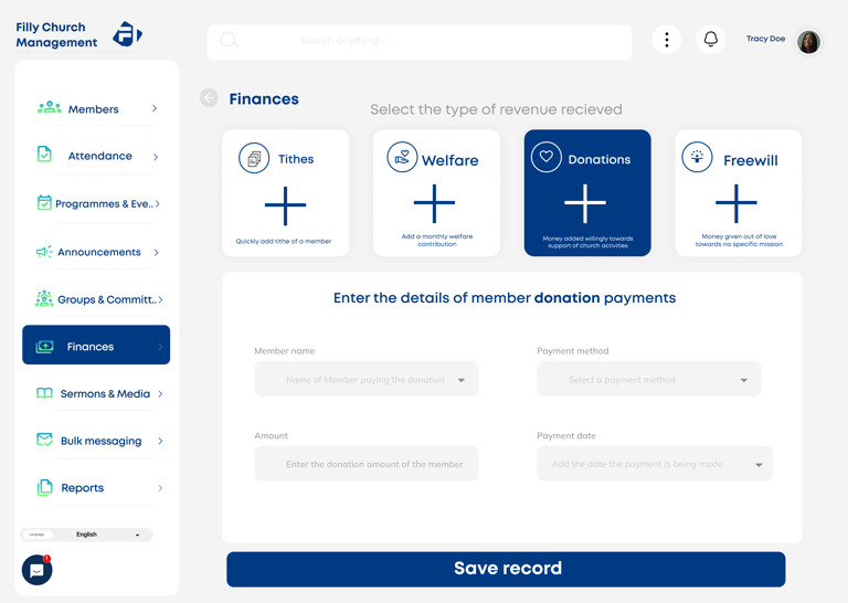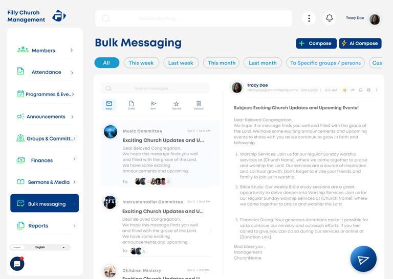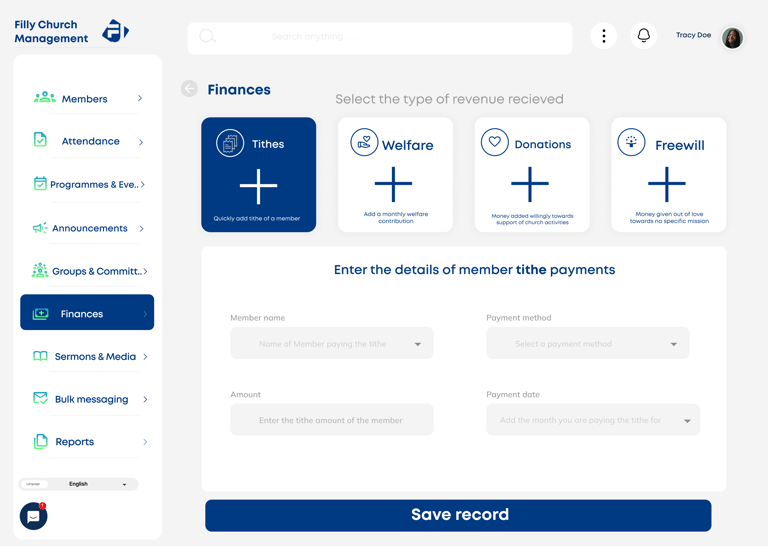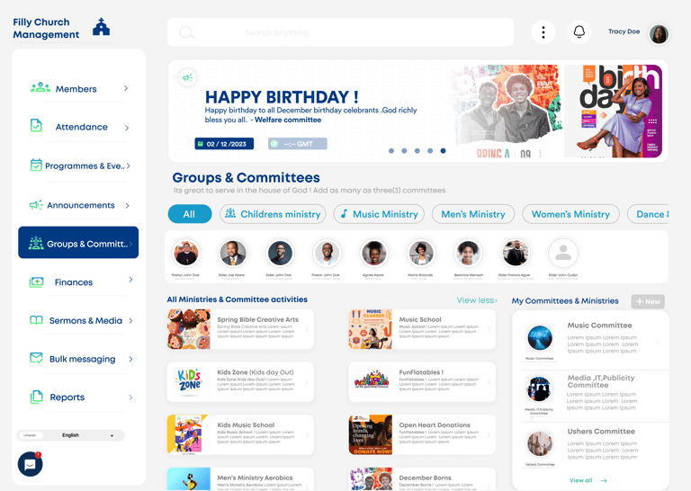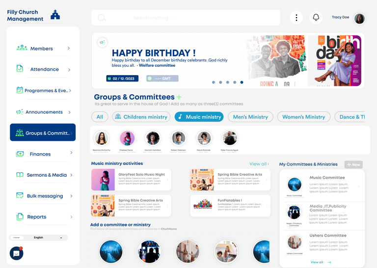 Role-Based Access Control – Provides secure, customized access for pastors, administrators, and members to maintain privacy and clarity of responsibilities.